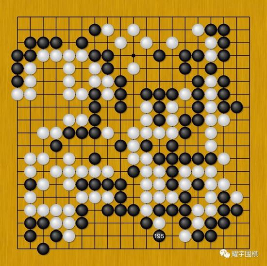 图7:局面进行到黑195二路打吃时,目前局势非常细微。黑棋可能胜望略大,但胜负应该在半目之间。
