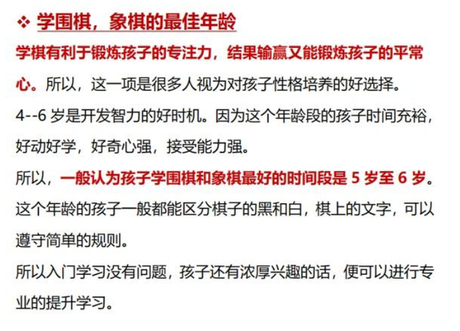孩子不同年龄适合学不同特长 4-6岁适合学围棋