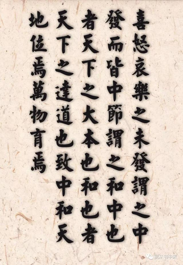 “中”“和”二字,《中庸》里是这样解释的,——“喜怒衰乐之末发谓之中,发而皆中节谓之和。中也者,天下之大本也。中也者,天下之本也;和也者,天下之达道也。致中和,天地位焉,万物育焉”。