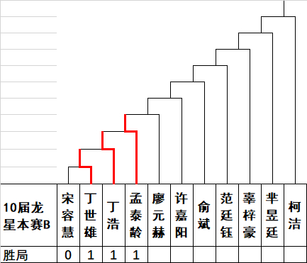 B组:丁世雄胜宋容慧,丁浩胜丁世雄负孟泰龄,廖元赫七段,许嘉阳八段,俞斌九段,范廷钰九段,辜梓豪九段,芈昱廷九段,柯洁九段