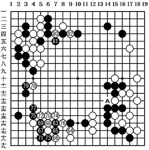 上方白80和白82选择动手的时机相当灵敏。铃木伸二或许没看到黑65和黑67的手段,总之很难相信会选择这类手段。显然是对黑棋进行反击了。