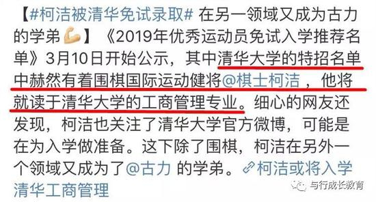 围棋天才柯洁免试保送清华大学的背后也靠自己的“商圈”。