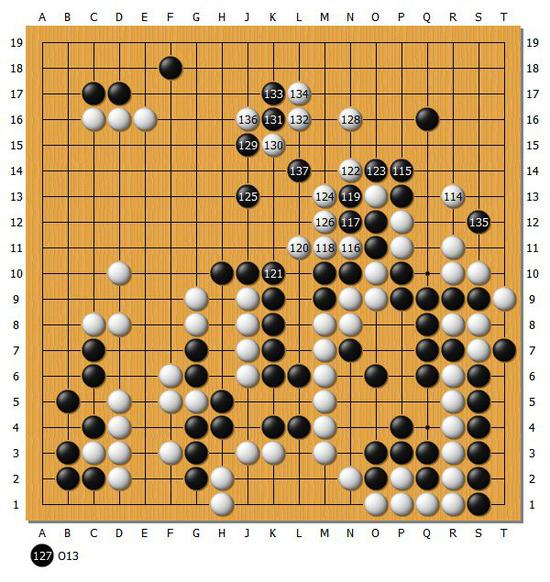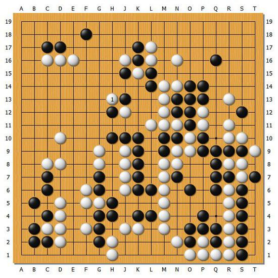 【图12】本局伊始在下方形成了激战,中盘阶段黑棋掌控了优势。在最后黑棋将左边活出,就此决定了胜势。