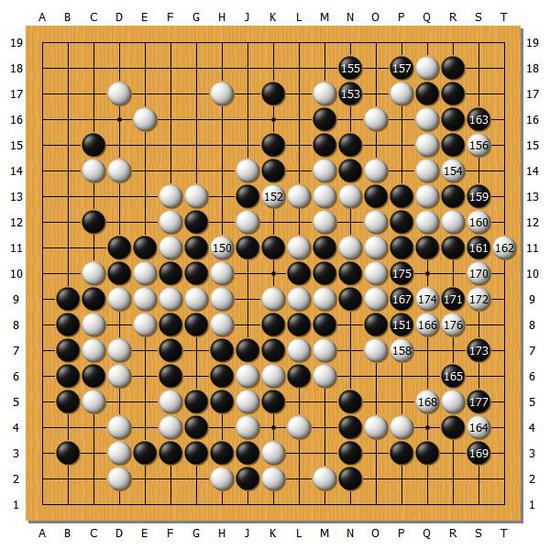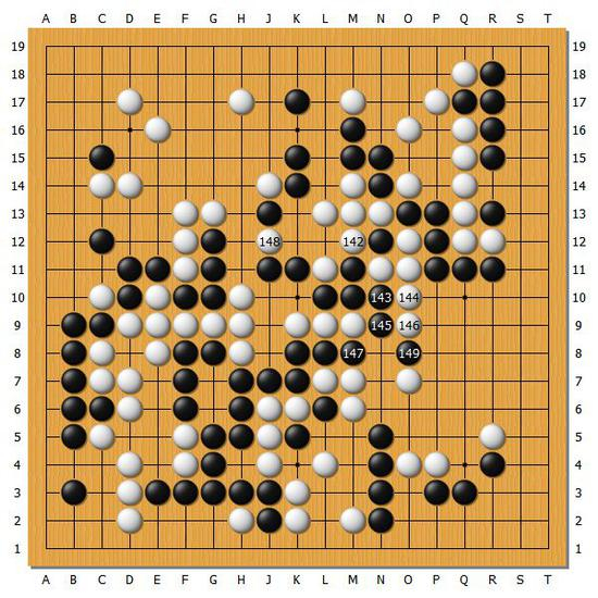 【图10】黑149的挖成为锁定胜局的一手棋。