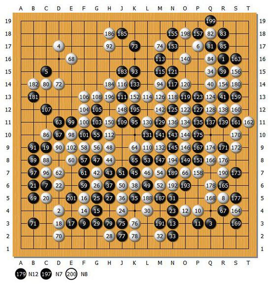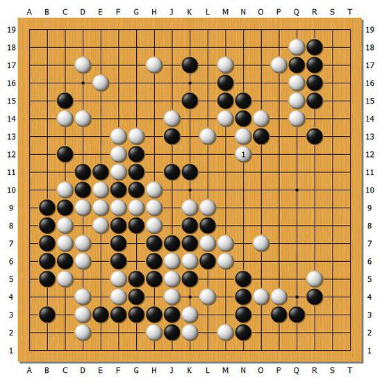 【图12】最后在下方形成劫争,白棋用光了全部子弹但是无功而返,只能选择认输。