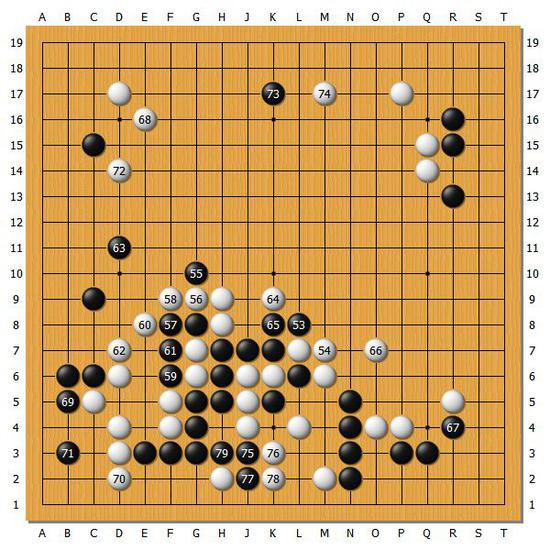 【图2】黑75到黑79,羽根直树选择了忍耐。在此时选择忍耐确实是好手。