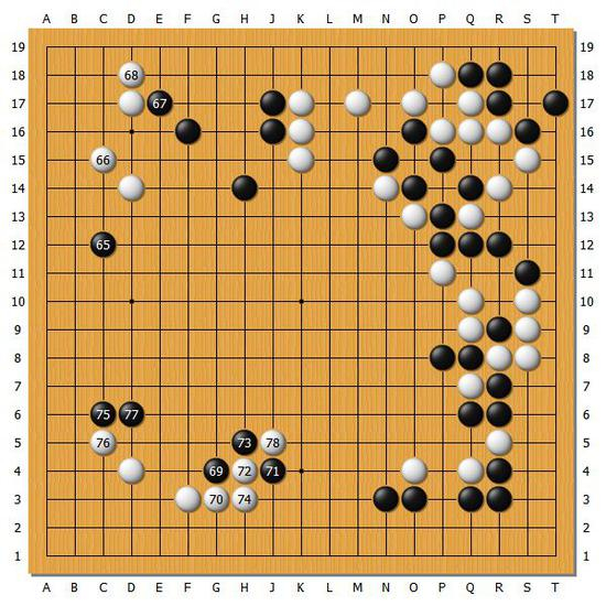 【图5】白76尖顶之后,白78断了一手,白棋从这个时候把局面抓在自己手中。