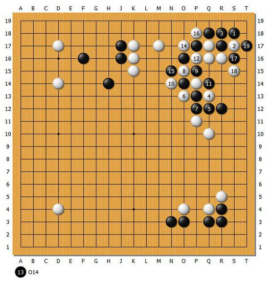 【图3】不过黑棋在右上角,实战留下了一个打劫的手段,所以右边的战斗总体而言是白棋不错。