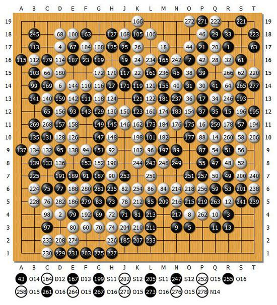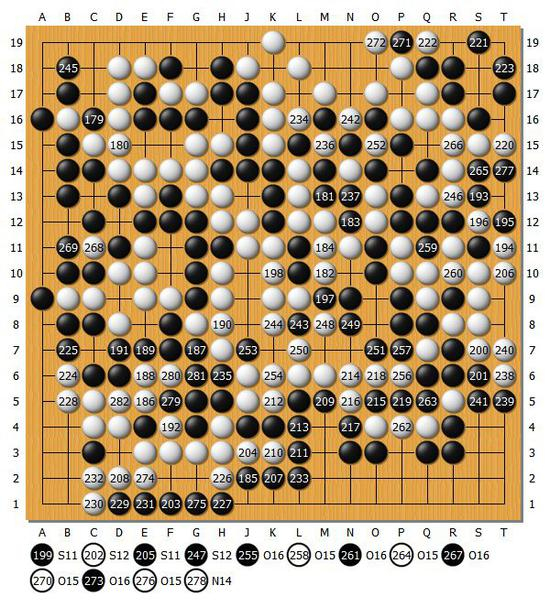 结果:共282手 白中盘胜