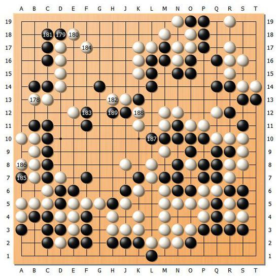 【图9】黑189压之后,虽然依旧是细棋,但是黑棋的形势已经开始好转。