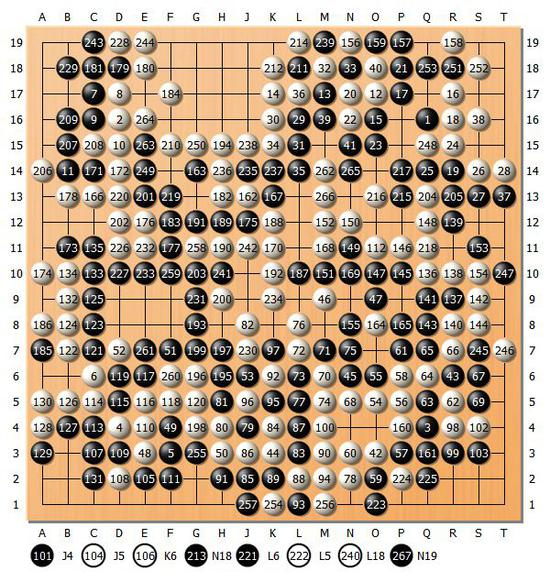 结果:共267手 黑中盘胜