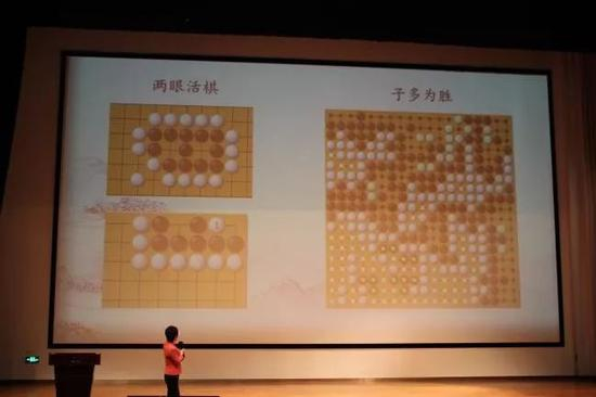 “通过今天的演讲,能让同学们对围棋产生兴趣,我就很快乐了。”华学明领队表明了自己简单的目的。而对于许多未接触过围棋的同学们来说,了解什么是真正的围棋十分重要。围棋没有像大家想象中的那样严肃,其实围棋可以很安静也可以很活跃。“动静结合”是围棋的特点。华学明领队利用“共赢”、“中庸”、“先中后”、“厚和薄”等例子阐述了她对围棋的理解和思考。围棋和人生是紧密相连的,围棋中包含了人生的哲学,任何事情都要讲究一个“度”。此外,围棋的术语还被广泛应用到现在的社会媒体。