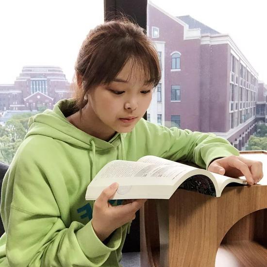 (图为18传棋专业的潘文萱同学正在坐垫上阅读)