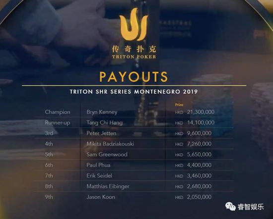而Peter Jetten第9次进入Triton超豪奖励圈,超过400万美金奖励,已经表现了他具有统治力的能力,在这个持久战中,最终被Kenney淘汰获得第3名,和960万港币奖金。