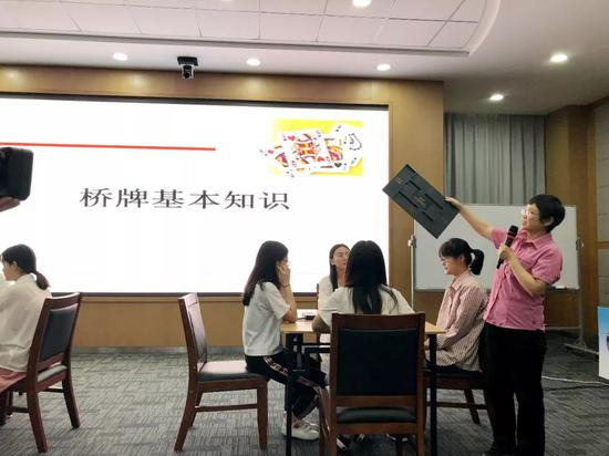 活动现场,古玲首先给广大师生讲授了桥牌文化知识,桥牌在中国的发展情况已经中国女队获得国际大赛冠军的情况。