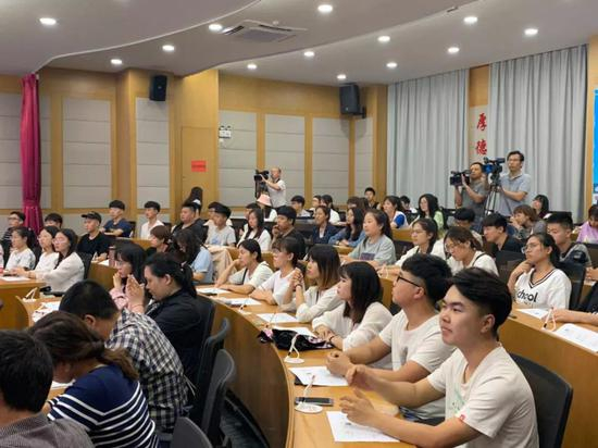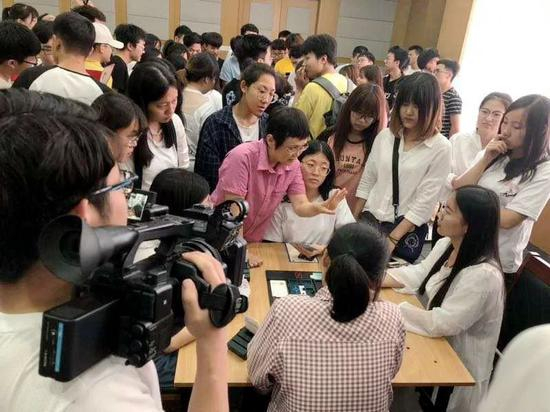 朱小音在授课中介绍了桥牌基础及基本打法。在最后的互动环节,两位世界冠军古玲和福中、朱小音和仲江分别与师生们进行了答疑解惑。