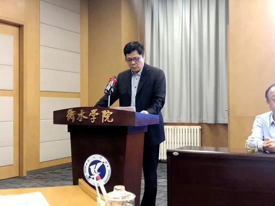 他介绍说,衡水学院是衡水市唯一一所全日制普通本科院校,学校的前身为1923年创立的直隶六师,2004年升格更名为衡水学院,有54个本科专业,全日制在校生14000余人。衡水学院桥牌活动开始于1980年,2004年开设选修课,2011年设置巩固体育必修课。通过桥牌课程建设、科学研究,开展学生社团、运动训练和竞赛、赛事服务等,已形成多角度多层次普及和推广的科学布局和良好发展态势,桥牌已经成为衡水学院校园文化的一大特色品牌。衡水学院还设有桥牌教研室、桥牌训练室和桥牌活动室等活动场所。多年来,衡水学院桥牌队多次参加国家级桥牌比赛,取得了不俗战绩。