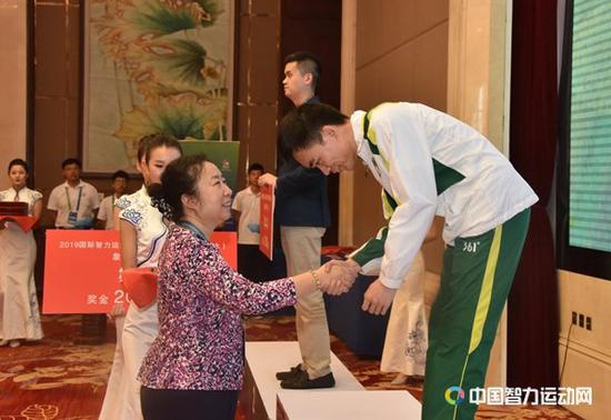 国际智力运动联盟主席陈泽兰为曹岩磊颁奖