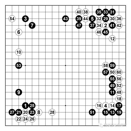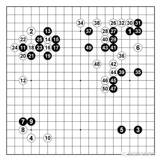 黑1,3,5,7是不太常见的下法,因为对手对常见的布局一定非常的熟悉,所以我并不希望下成太过流行的格局,黑17并不是定式的常见下法。
