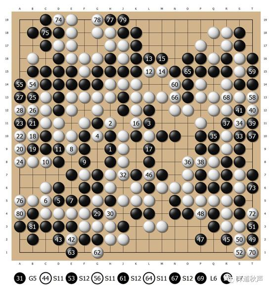 棋谱记录到黑81粘结束,后面大约是没跟上记,现在大致是黑棋盘面多5目的样子,肯定是贴不出目了。
