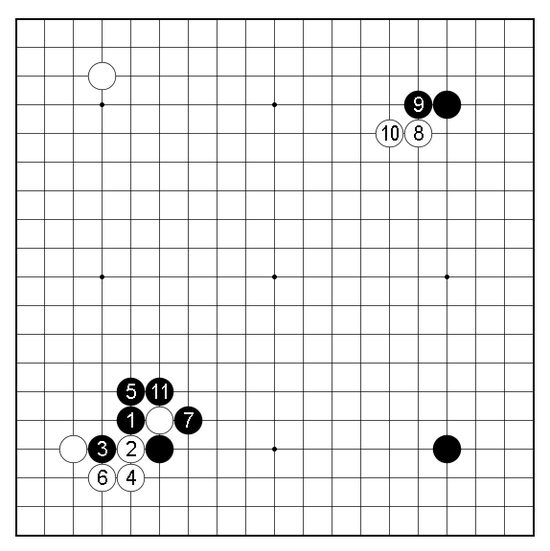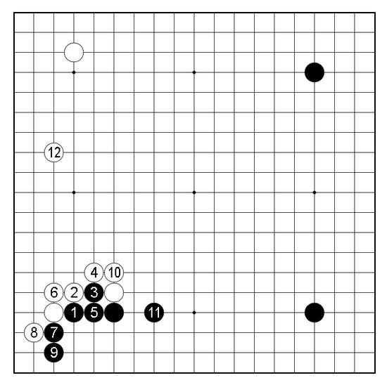 黑9长一手后,黑11提一子了事。