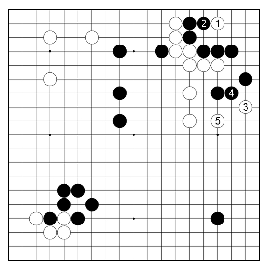 实战二位徒弟自黑1扳出,白2自然迎击互断开来。黑3打完再5位立,白6厚厚吃住一角,自无不满。