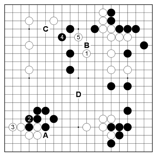 A-D四个选点,有3个是AI的推荐招法,还有一个是吴清源的选点。