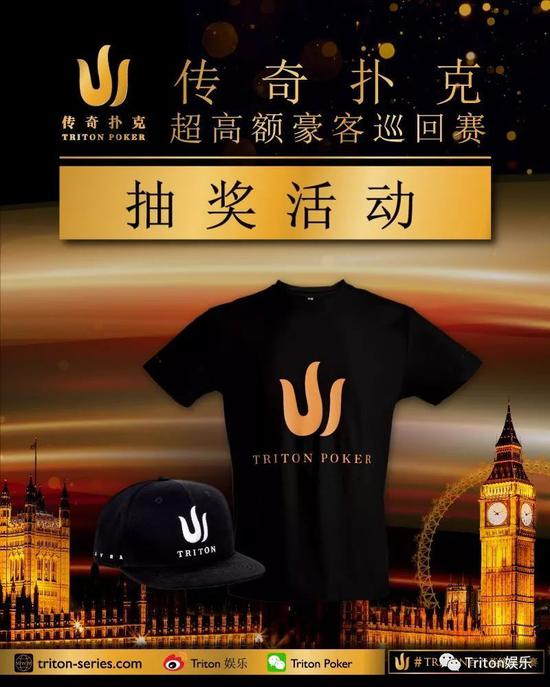 Trtion超高额豪客巡回赛伦敦站将在7月31日至8月8日在伦敦花园街希尔顿酒店举行。评论并转发Triton Poker微博,将在8月9日抽取两名幸运玩家,赠送出一个棒球帽和一件T-shirt。感谢大家对TritonPoker的支持,比赛还在继续,喊上你的小伙伴们一起来看吧!