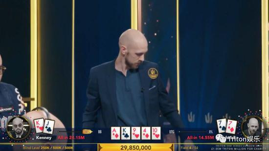 最终Kenney赢下底池,就此本土作战的Stephen Chidwick结束了本次百万英镑慈善赛的征途,获得了第四名和440万英镑奖金。