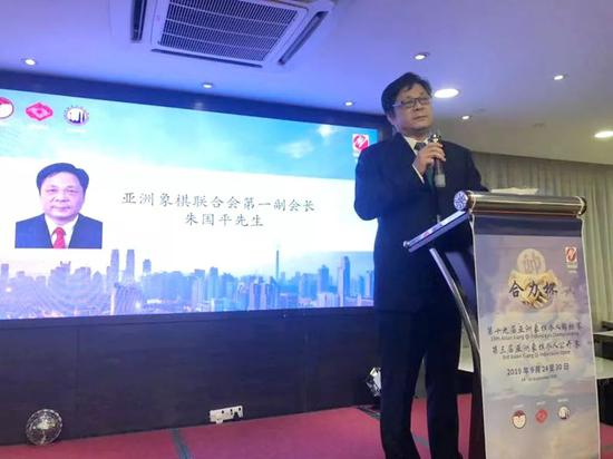 亚洲象棋联合会第一副会长、中国象棋协会主席朱国平在开幕致辞中讲到:1978年,亚洲象棋联合会在马来西亚沙捞越古晋市成立,多年来马来西亚为亚洲象棋的普及推广、象棋文化的传承弘扬做出了卓越贡献。41年后,第19届亚洲象棋个人锦标赛在马来西亚吉隆坡市举办,组委会做了精心组织和细致安排,为远道而来的朋友们创造良好的比赛和生活环境,相信这将是一次成功的、具有承前启后意义的精彩盛会。
