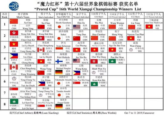 温哥华当地时间10月11日,“魔力红杯”第十六届世界象棋锦标赛和第二届世界象棋青少年锦标赛落下帷幕,男子个人决赛,中国徐超力克中国香港黄学谦夺冠。徐超和汪洋联手为中国队拿下男子团体冠军。世青赛男子U16组、U12组和女子U16组冠军也均为中国棋手,中国在本次世锦赛和世青赛中共夺得5枚金牌。