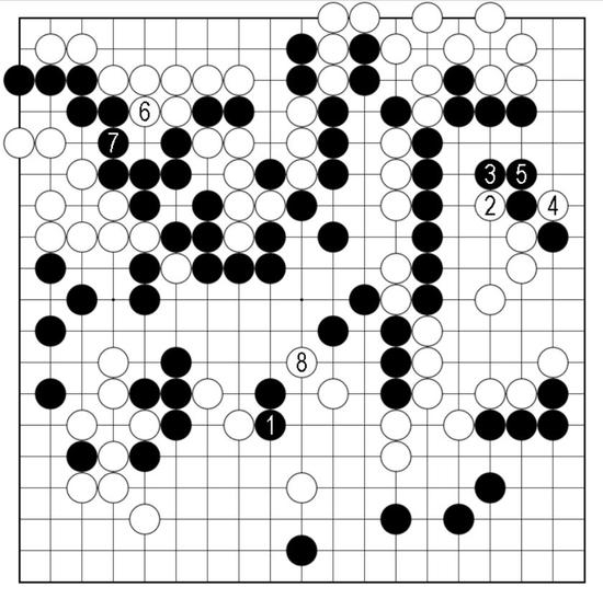 白6与黑7交换之后,白8在中腹尖入?看似平实之招,却使局面的天秤瞬间颠倒……