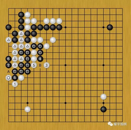 那么我们就来看看黑棋A位打出的话,会是什么情况: