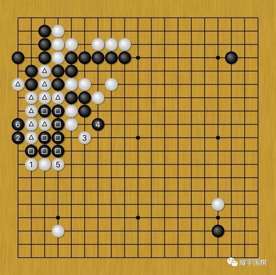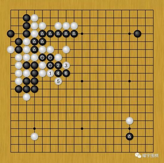 以上就是在丁浩黑53下出后,白棋能想到的所有办法,图5中的白1飞已经是最强手了,可还是倒在了图6的变化中。