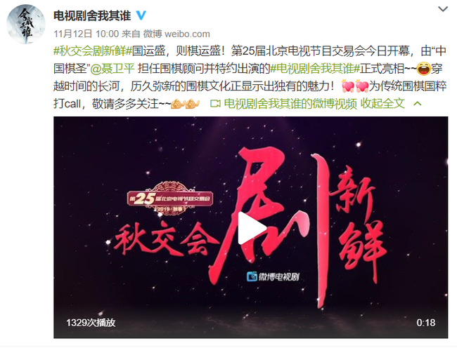 而在此之前的11月12日,棋圣聂卫平与电视剧《舍我其谁》主创团队出席了第25届北京电视节目交易会开幕式,当天聂卫平老师呆萌上线,现场被宣布也将惊喜参演该剧,幽默称自己演戏得辛苦导演躺着拍了