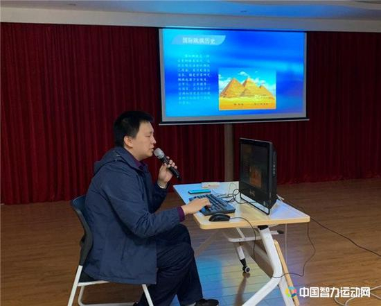 全国国际跳棋大师赛裁判长谢芳、亚洲锦标赛冠军李振宇、赵汗青、全国智运会个人、团体冠军高文龙、熊智勇等一行,来到澧溪中学分校,谢芳首先给师生们介绍了四位大师,之后给同学们讲解国际跳棋的基本规则。