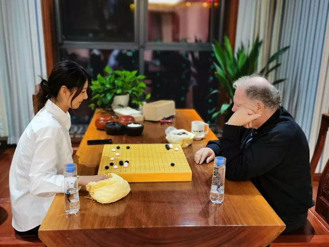 ▲2019年11月12日,张熙源同欧盟围棋协会主席马丁对局。(澳门围棋会供图)