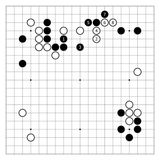 AI视角下,白1顶紧要,此后黑从2位退回,白得以3位虎。此后黑4刺,白扳一手交换成为必然。