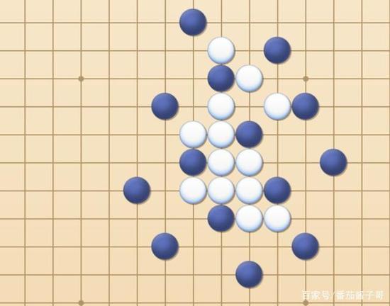 从棋盘中显而易见,白棋的分布非常有规律,看似分散实则握着黑棋的“生杀大权”。黑棋看似聚团,在前期被认为胜率很大,实则在被白棋慢慢的分割,到最后黑棋则是没有一处地方能连成五子,最多也就是被连成四子,也就是说已经赢不了比赛了,黑棋的命运最后被掌握在白棋手中。这便是这种方法最显著的特点,“形散神不散”,在防守之中悄然让对方无处下子。这种方法酱子哥叫他“泥潭战术”,因为一旦被困其中则会非常难受,所有的进攻犹如打在棉花上,如深陷泥潭,有劲无处使。