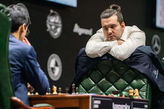 赛场内没有人佩戴口罩,镜头中的棋手形象依然如往昔一般优雅。尽管国际棋联主席德沃科维奇赛前宣称“想戴什么口罩都可以,要是乐意的话,戴上击剑选手的防护面具也行”,但棋手们还是尽量保持着体面的参赛礼节。