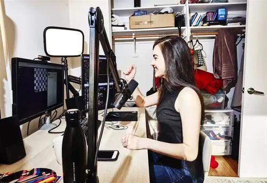 此次候选人赛的解说嘉宾中,有一位国象“直播网红”Alexandra Botez。这个24岁的加拿大姑娘享有国际棋联大师的称号,还是斯坦福大学国际象棋俱乐部的首位女主席。她的全职直播日常一般是这样的:坐在公寓里,面对3台电脑显示屏、网络摄像头和麦克风,与网友轮番在线下棋,同时她还会和1000多名观看比赛的观众即时交谈,收获打赏。