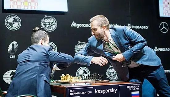 国际棋联赛前安全健康提示,可以握手也可以不握手。部分参赛棋手选择用臂肘相撞来代替握手。