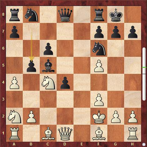 当然,这一切的起点都要从那步e5说起。常规的下法是黑方走Nbd7 或者 c5反击中心,这两个变化中白方胜率都不错,有一些优势。
