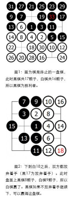 双弃手终:对弈过程中可以放弃着手,如果双方同时都放弃着手,则棋局终止结束。