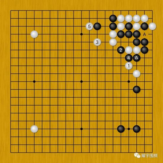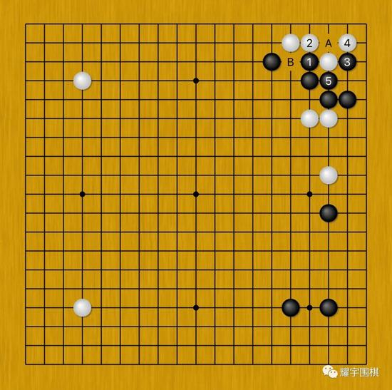 而当黑5打吃的时候,看似白棋在A位粘是必然的应对,其实不然。