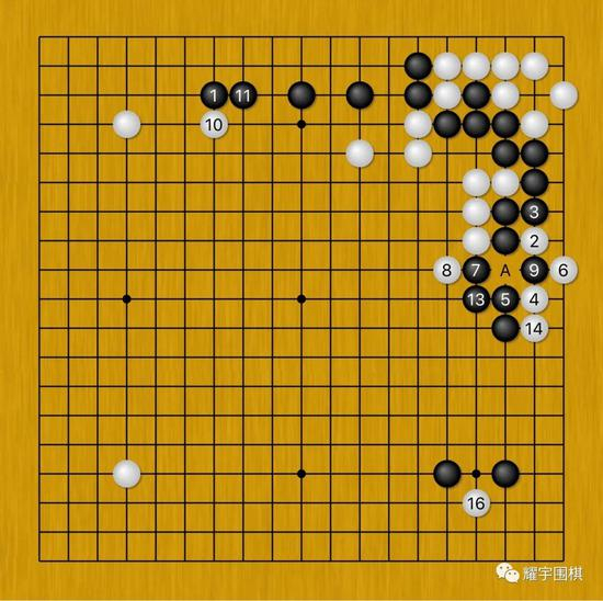 黑12再花一手棋加强黑圆圈大块,这样这个分支剧情就暂时到这里。