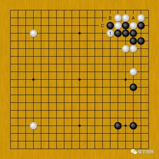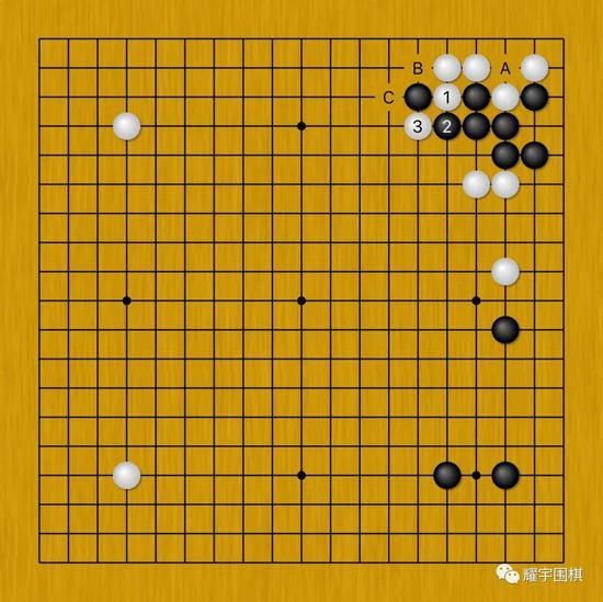 面对白1、3冲断,黑棋下一手有A、B、C三个选择。