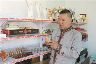 “1982年,我在博物馆里见到了真正的蒙古象棋。蒙古象棋里只有‘官’也就是‘王’,只有这枚棋子有人的形象,其他棋子都是各种动物。木雕的棋子惟妙惟肖,狮将和虎将凛然立于各自的‘官’旁边,骆驼和牛车严阵以待,小兵也摩拳擦掌。当时我久久驻足徘徊在展示柜前,被这副年代久远的蒙古象棋深深地吸引着。离开时,我就在心中暗暗立誓:一定要为蒙古象棋正名,并把这门古老的棋艺传承下去。”塞音吉雅回忆道。