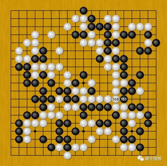 那也就是说,当白166后,正常情况下,双方在15个回合左右就能结束本局了。最后的结果也很明朗,黑胜3目半。