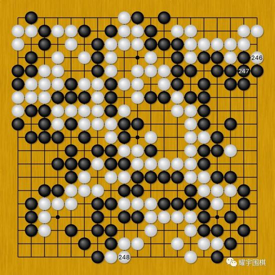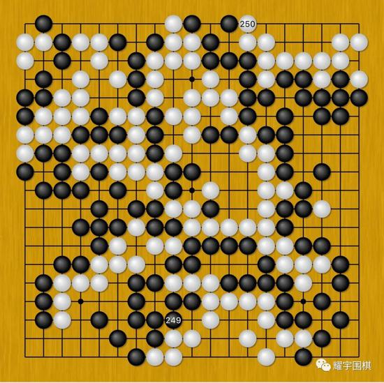 图13:只想赶快结束本局的马晓春随便落下了黑249这步棋。但他做梦都没想到,黑249居然是本局最后的败招。